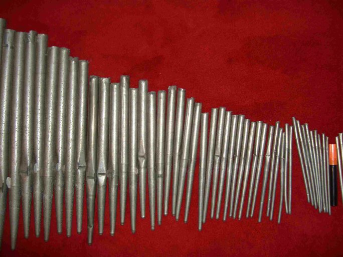 Die am oberen Ende beschädigten Pfeifen des Prinzipal 8'.